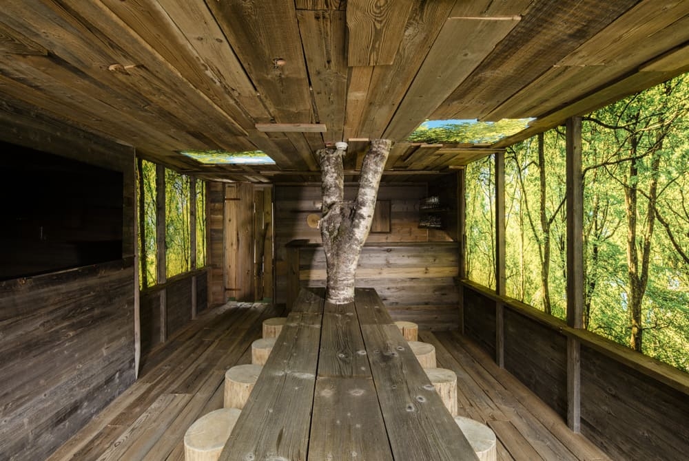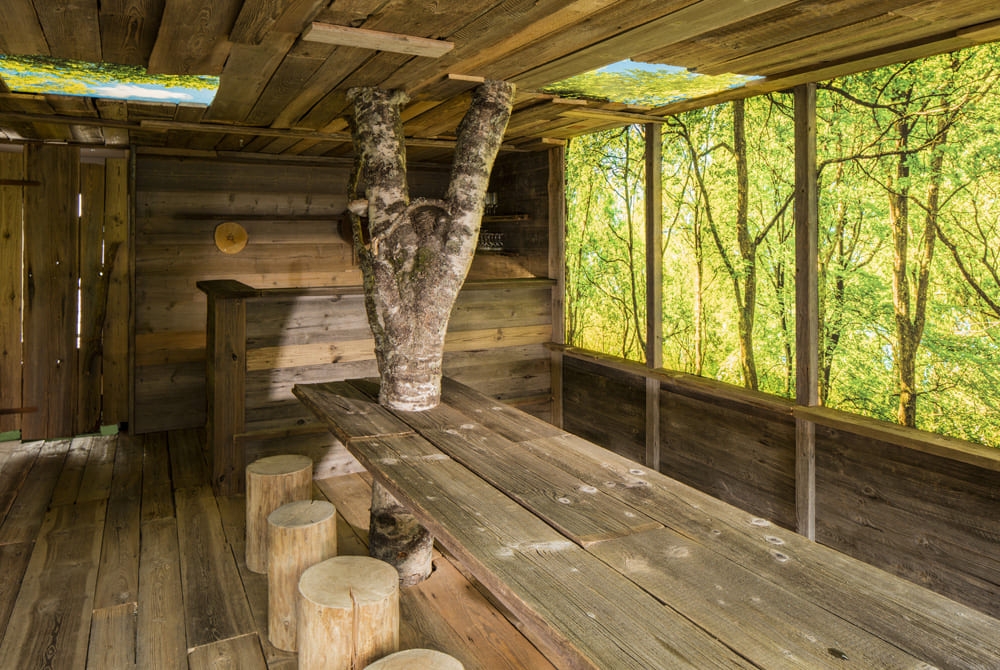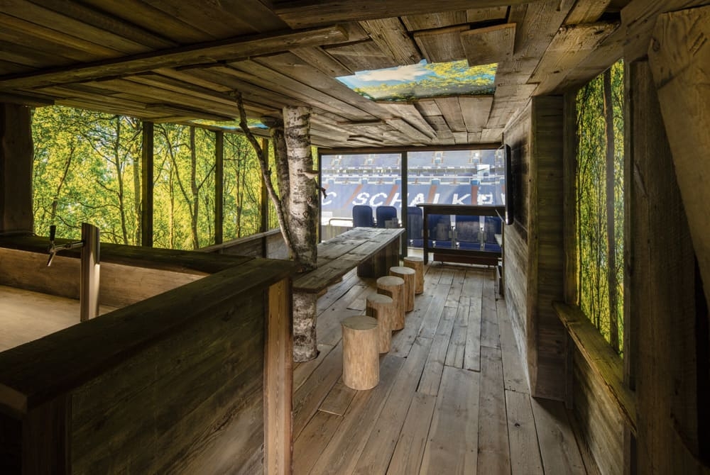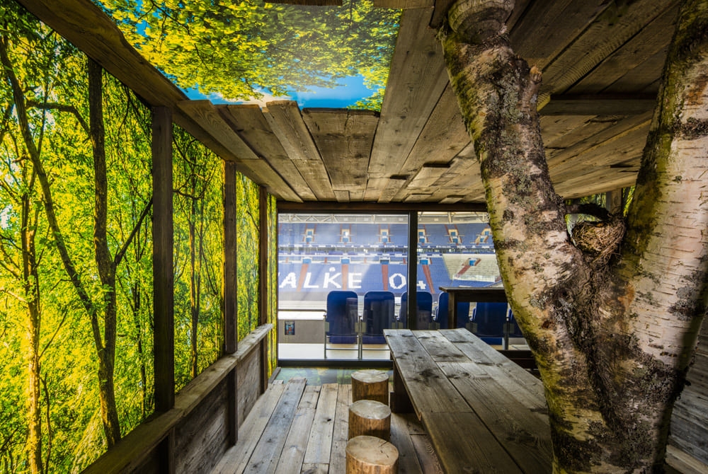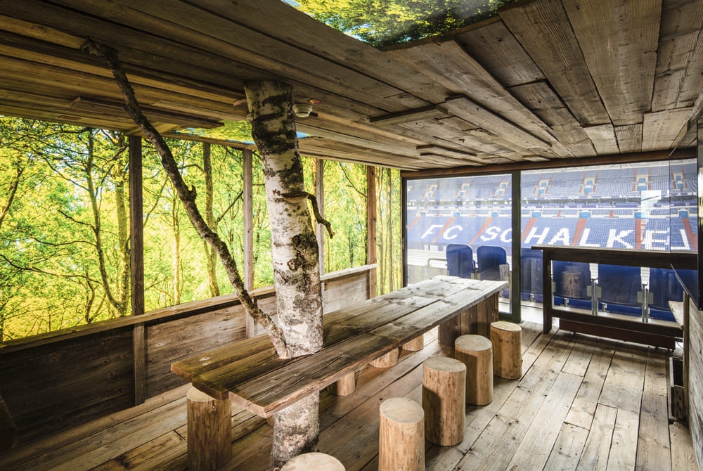 Passend zum Salesforce-Thema "Trailblazing" wurde die Fußball-Loge in der Veltins Arena auf Schalke in ein rustikales Baumhaus verwandelt. Dabei wurde echtes Altholz und hinterleuchtete Wald-Grafiken verwendet um das Wald-Feeling perfekt zu machen.